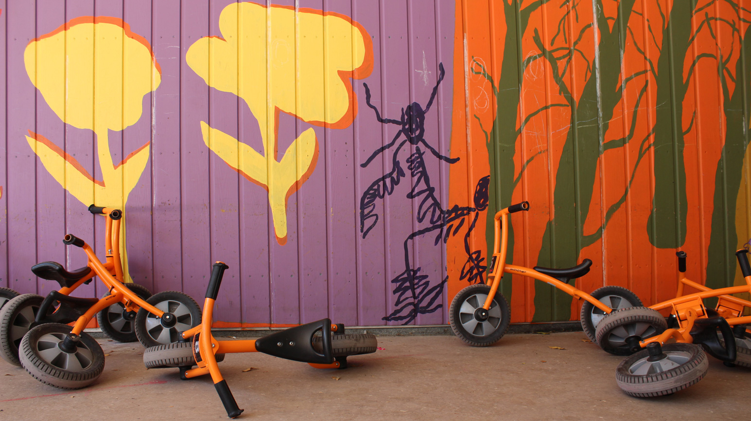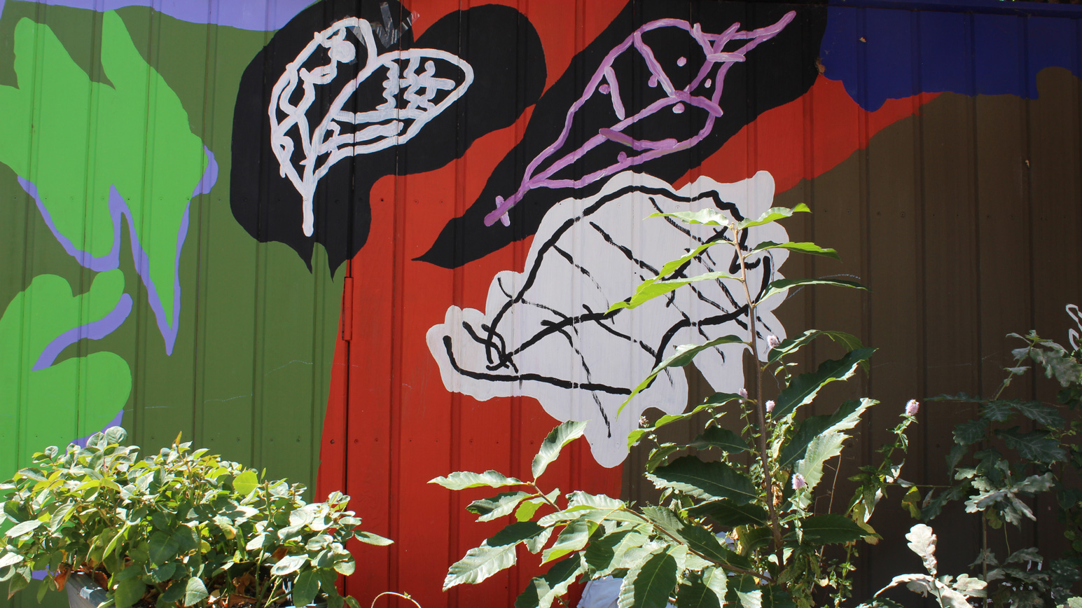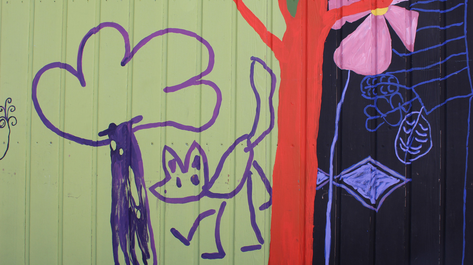 Oeuvre murale imaginée avec les enfants de l’accueil de loisirs de l’École des Grands Moulins et habitée des contributions d’Ahmed, Rawassi, Rimass, Lou, Jeanne, Ayoub, Missy, Alix, Alyssa, Anahke, Fanta et Neyla.
