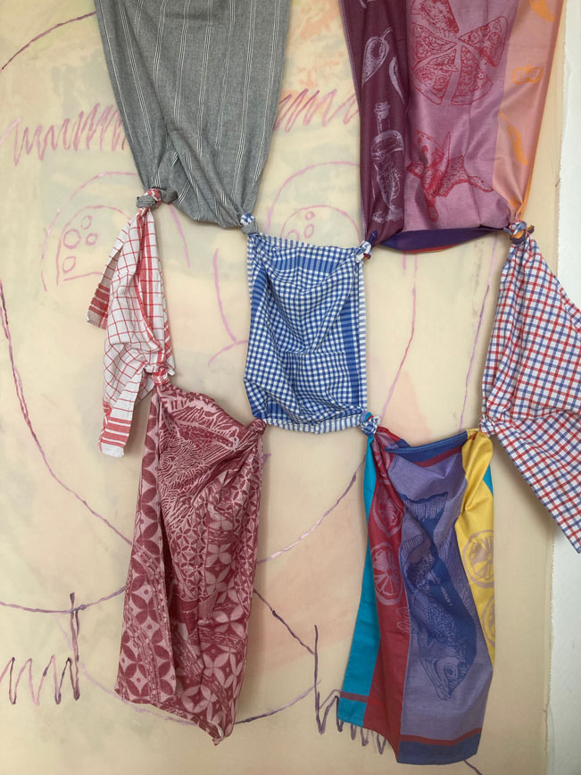 2021, encre, coton, linge de cuisine de mon voisin, 140 x 210 cm