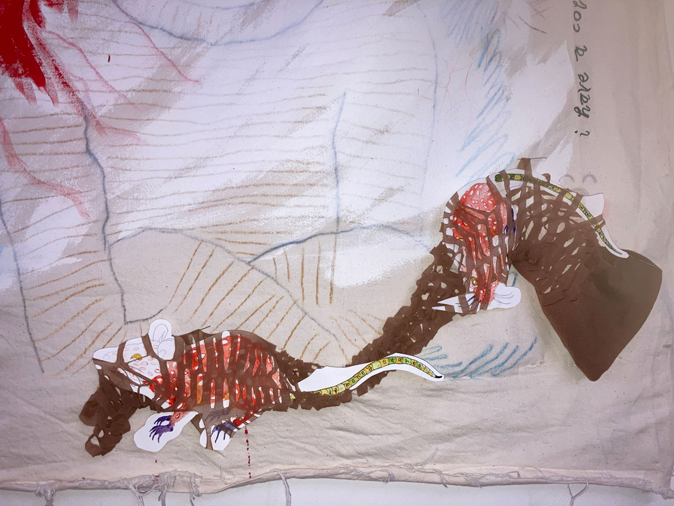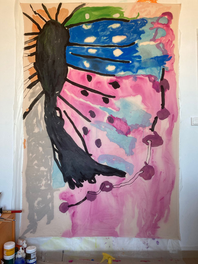 2021, peintures et collaboration avec julie capdevielle, 140 x 210 cm